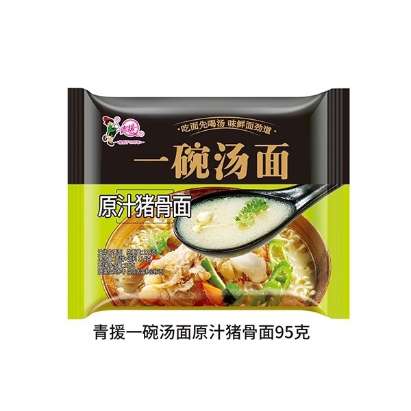 青援一碗湯面原汁豬骨面95g是由青援食品有限公司經(jīng)營(yíng)的方便食品->方便面->方便面系列產(chǎn)品,該產(chǎn)品選用品質(zhì)優(yōu)良的原材料制作而成,從選材到成品,每一步都經(jīng)過嚴(yán)格的質(zhì)量把控。該款產(chǎn)品食用方便,十分契合當(dāng)下消費(fèi)者的需求,只需簡(jiǎn)單的幾步操作,便能享受到美味,省時(shí)省力,是日常居家的好伴侶,大大節(jié)省您的用餐時(shí)間。在旅游、踏青等外出活動(dòng)中,也可以為您輕松解決用餐問題。這款產(chǎn)品口味多樣,每一口都能帶給你別樣的體驗(yàn)。公司將繼續(xù)致力于產(chǎn)品的研發(fā)和創(chuàng)新,為消費(fèi)者提供更加豐富的美味體驗(yàn)。想要代理本款產(chǎn)品的經(jīng)銷商歡迎致電!